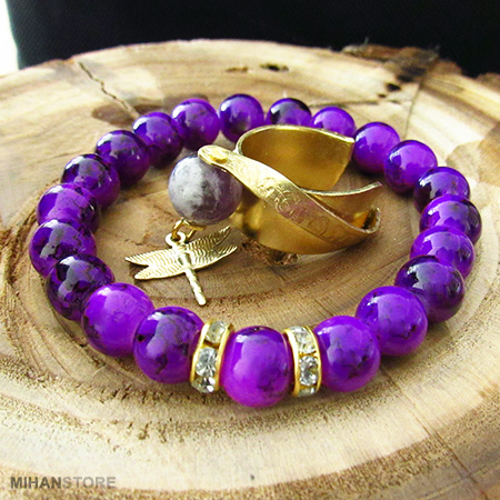 امروزه جوانان به دنبال طرح ها و استایل متفاوت و بدیع هستند. ست دستبند و انگشتر Violet یکی از انواع زیورآلاتی است که با طراحی فوق العاده جدید و تم شرقی ارائه گردیده و نمایی فوق العاده منحصر به فرد دارد. ضمنا استفاده از بهترین و زیباترین سنگ برای انگشتر به نام آمیتیست یکی از شاخص های زیبایی این ست می باشد.