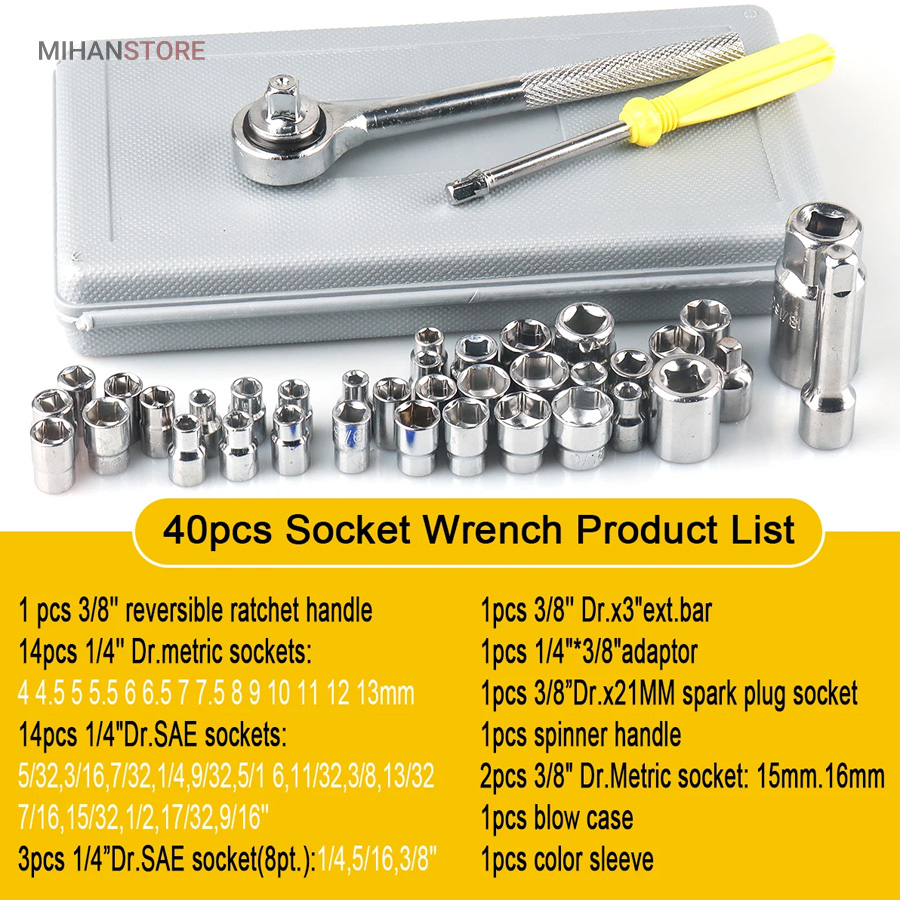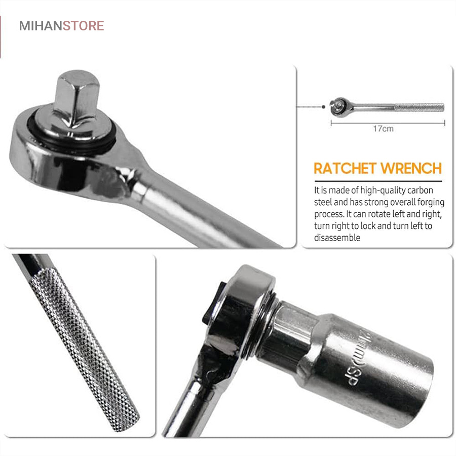 ویژگی های مجموعه 40 عددی آچار بکس AIWA: