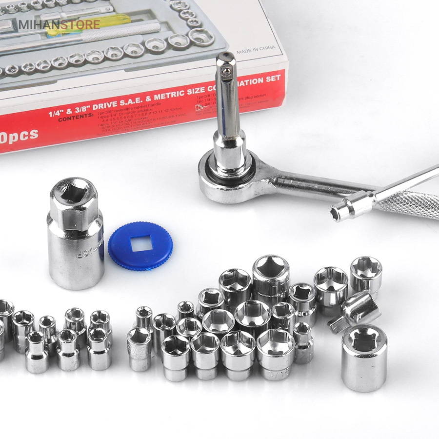 این مجموعه ست کامل ابزار و آچار بکس است که یک جعبه کامل از ابزار و آچار های مختلف برای استفاده انواع خودرو سواری و مجموعه ای ارزان قیمت جهت تعمیرات در خانه و خودرو میباشد. این بکس شامل سری کامل ریز تا درشت آچار بکس 40 تکه است. این بکس دارای تبدیل بکس های 1/4 به 3/8 و اچار شمع ماشین، کمکی بکس ومناسب برای خودرو منزل موتورسیکلت میباشد. مجموعه 40 عددی آچار بکس AIWA یک ست بی نظیر از انواع مختلف آچار بکس و متعلقات آن می باشد که تمامی این اقلام ساخته شده از استیل کروم وانادیوم با روکش صیقلی و آینه ای است.به کار گیری این آلیاژ در ساخت ابزار، باعث بالا رفتن مقاومت آن ها در برابر ضربه، حرارت و فشار خواهد شد و از زنگ زدگی هم جلوگیری می کند.