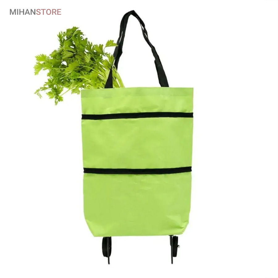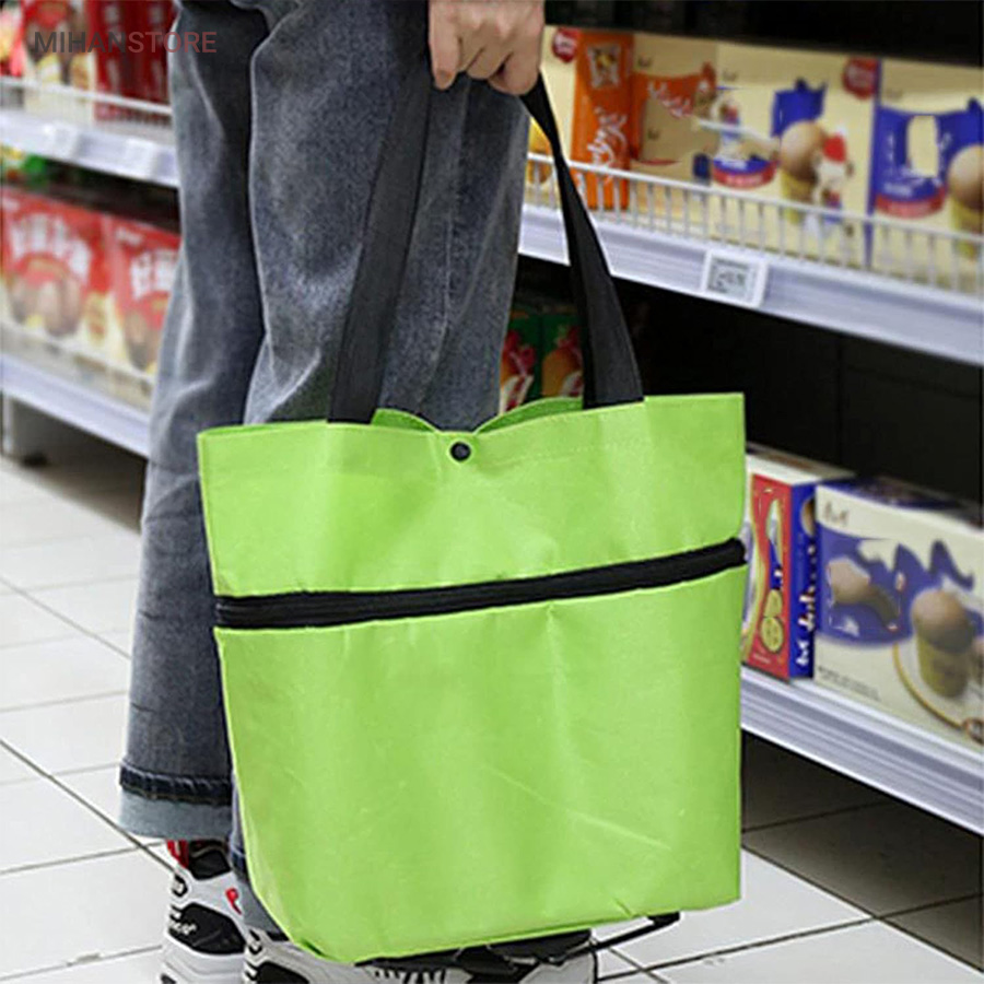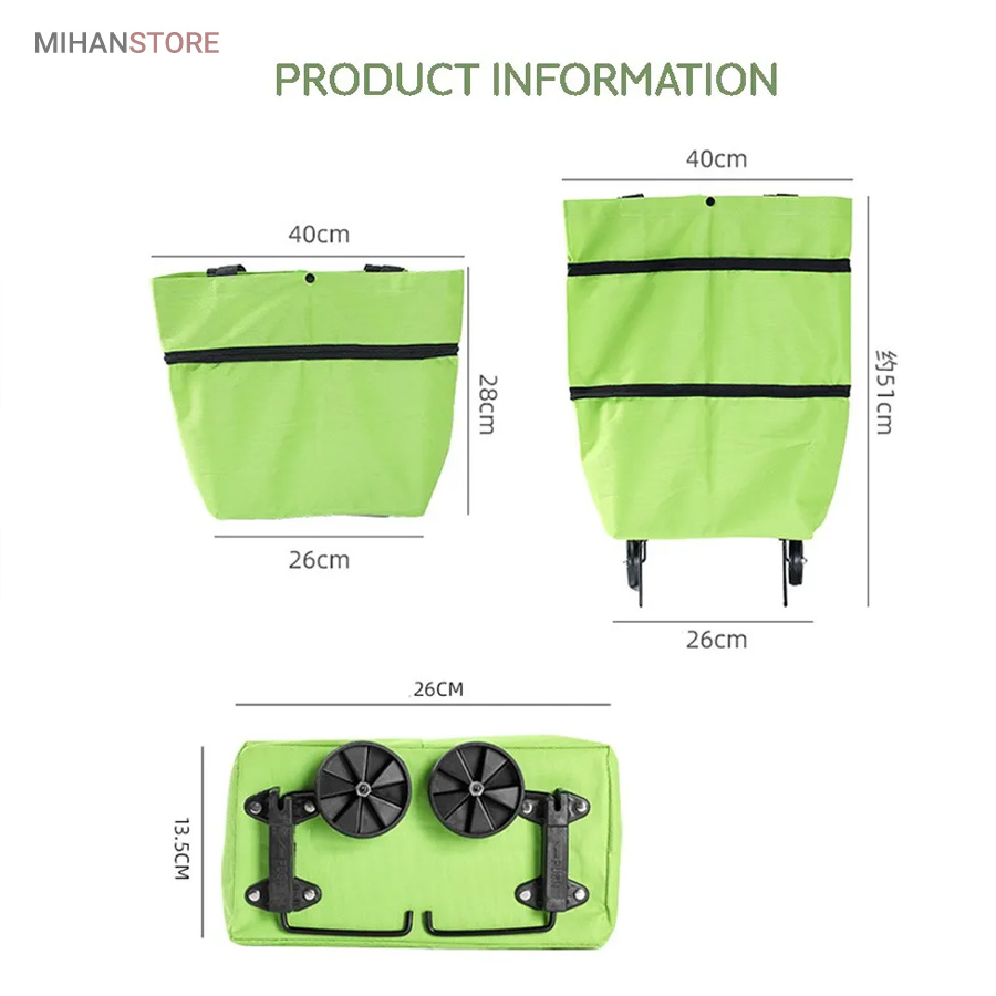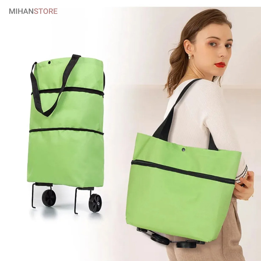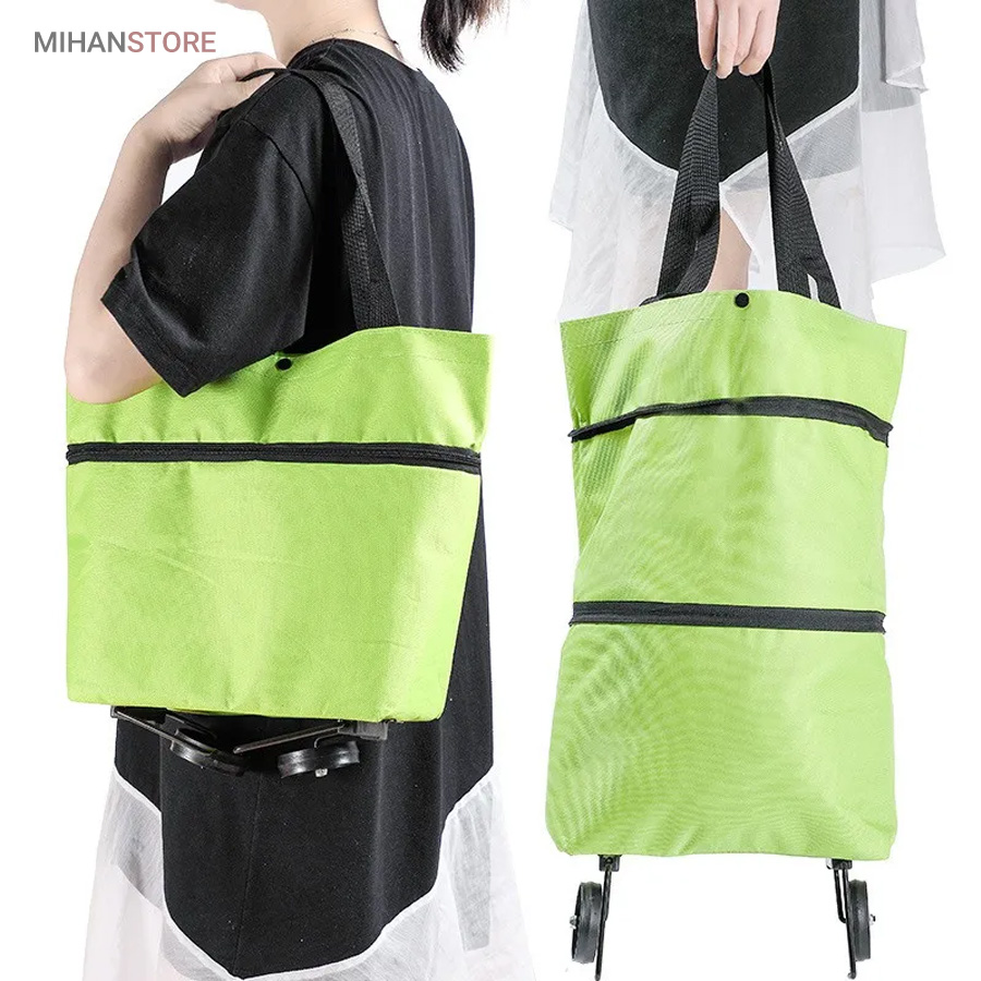 کیف خرید چرخدار تاشو دارای چرخ‌هایی است که به شما کمک می‌کند بدون اینکه وزن خریدتان را بر روی شانه‌ها یا دست‌های خود احساس کنید، خریدتان را به‌راحتی حمل کنید. برای استفاده از ساک خرید در حالت چرخدار، کمی تایرها را به سمت عقب کشیده تا از محل خود خارج شوند و در حالت چرخدار از ساک خرید استفاده کنید.