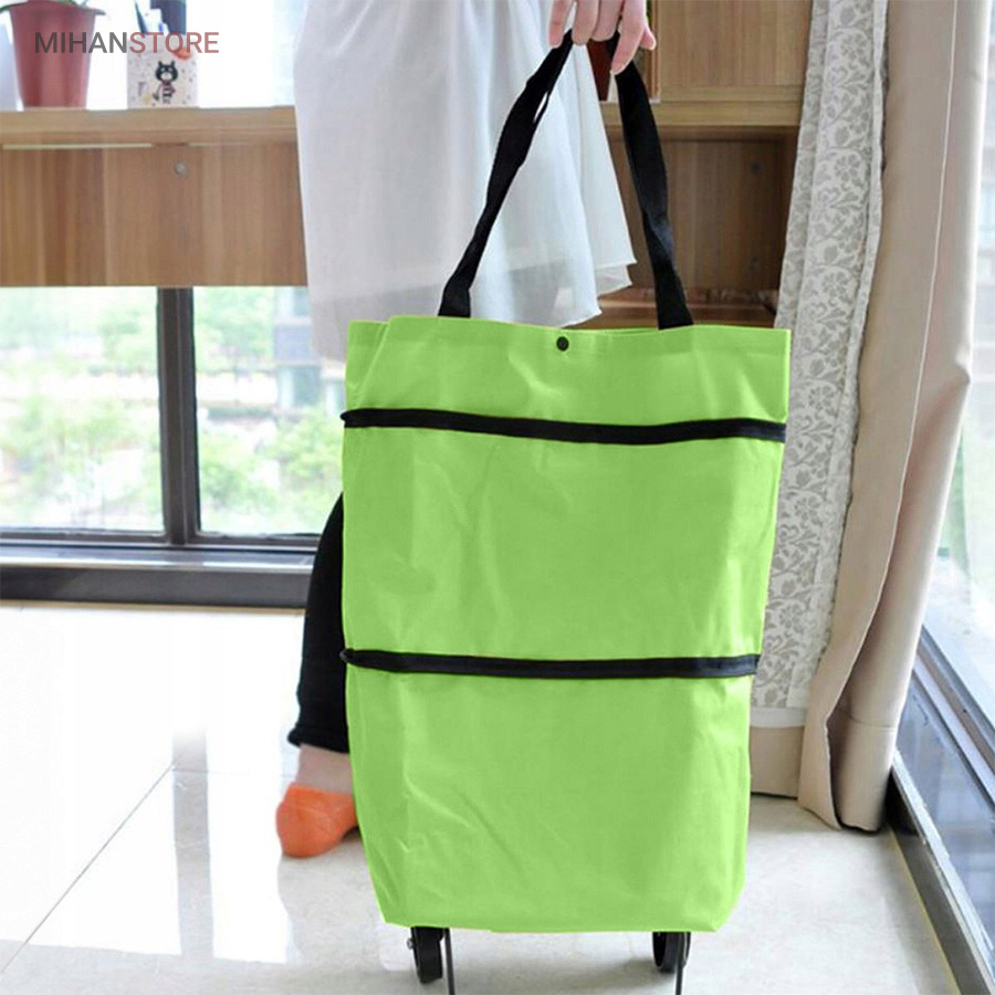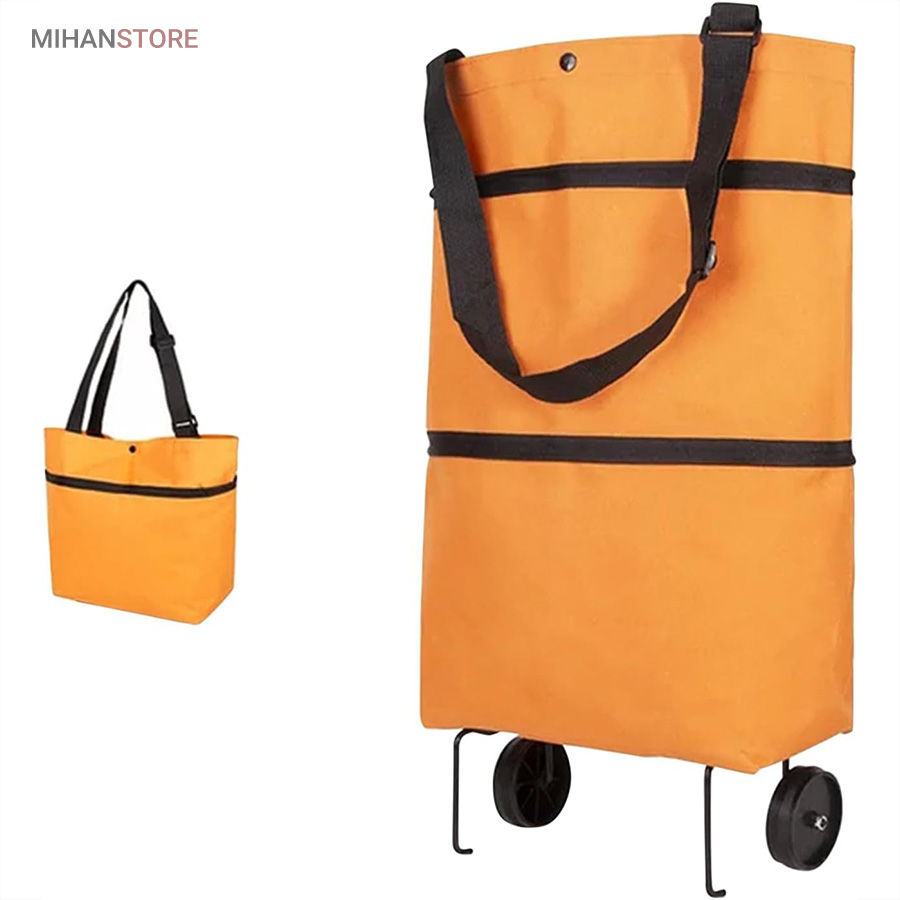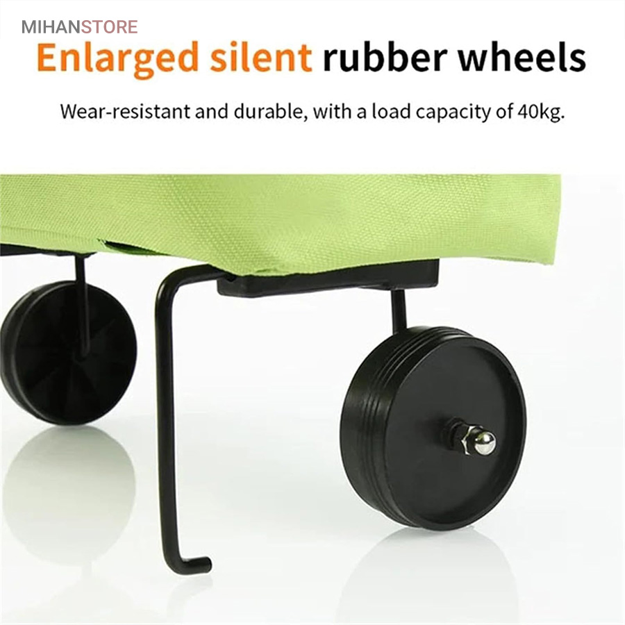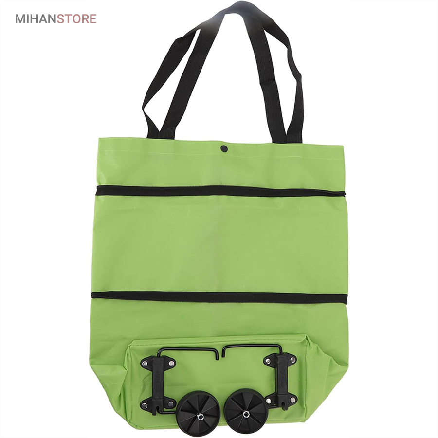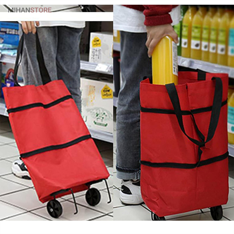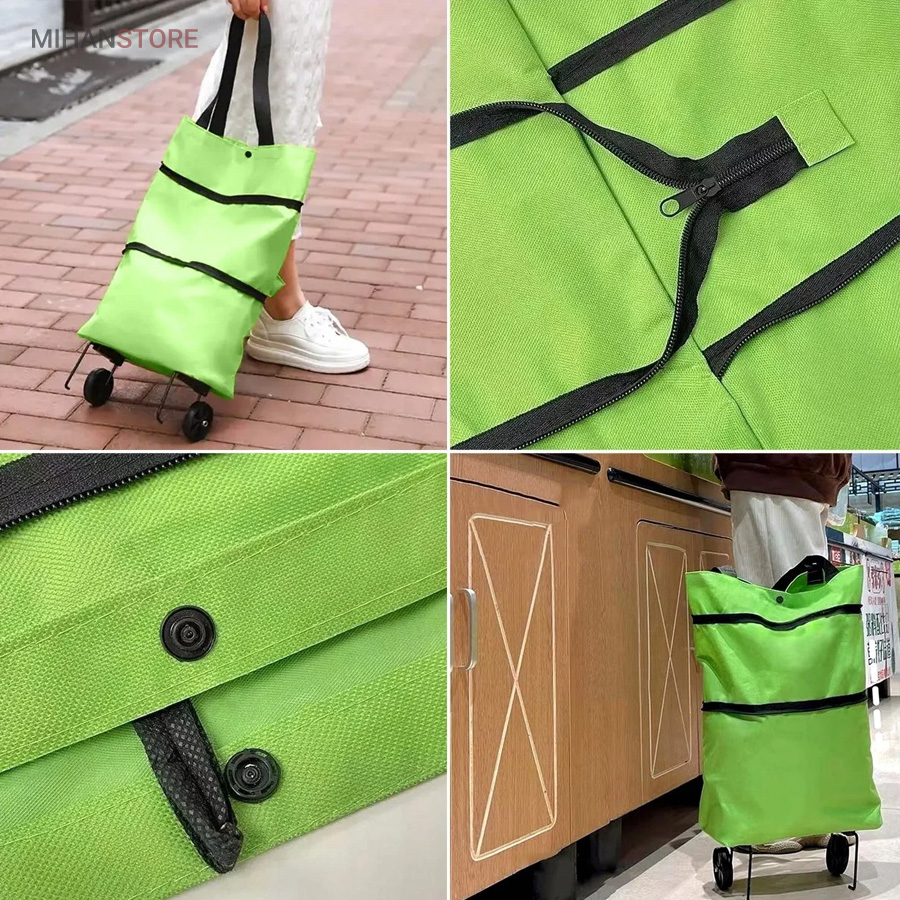 کیف خرید چرخدار تاشو دارای چرخ‌هایی است که به شما کمک می‌کند بدون اینکه وزن خریدتان را بر روی شانه‌ها یا دست‌های خود احساس کنید، خریدتان را به‌راحتی حمل کنید. برای استفاده از ساک خرید در حالت چرخدار، کمی تایرها را به سمت عقب کشیده تا از محل خود خارج شوند و در حالت چرخدار از ساک خرید استفاده کنید.