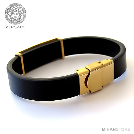 دستبند چرمی طرح ورساچه با دو رنگ قهوه‌ای و مشکی و پلاک نازک طلایی ورساچه  نمونه‌ای از زیورهای ساده و در عین حال پرطرفدار از جانب آقایان و خانوم ها است که با اکثر رنگ‌های لباس همخوانی داشته و در عین حال متفاوت دیده می‌شود. این دستبندها مناسب ترین هدیه برای جوانان شیک پوش است.